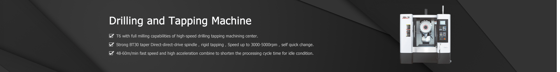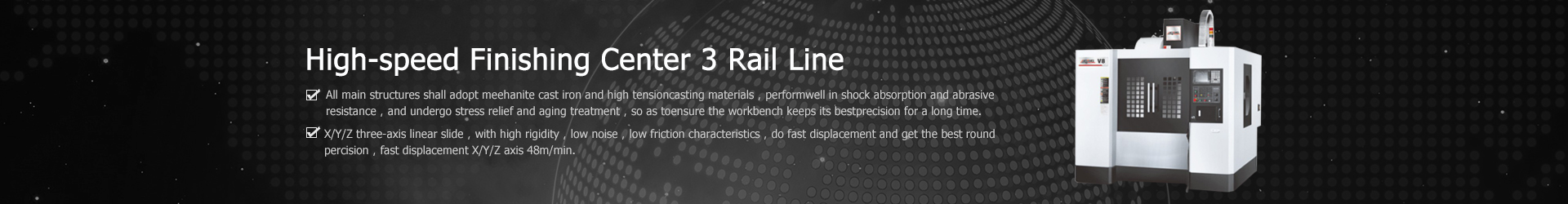 Characteristic:·The 48 meter high speed displacement can save 50% of the non processing time.·High column design, reserve fourth, fifth axis space.·The structu…
